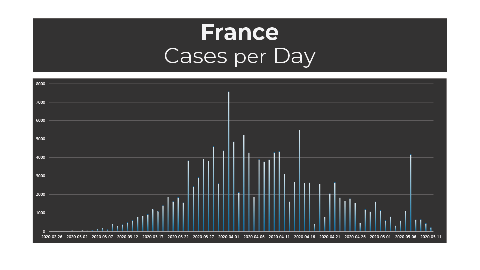 May 11 – COVID-19 Overview Charts France – Cases View Full Map France – Deaths View Full Map Italy – Cases View Full Map Italy – Deaths View Full Map Spain – Cases View Full Map Spain – Deaths View Full Map Sources: ECDC